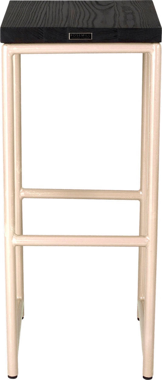 Off white metal stool with black stain ash wood made in UK - front view round frame