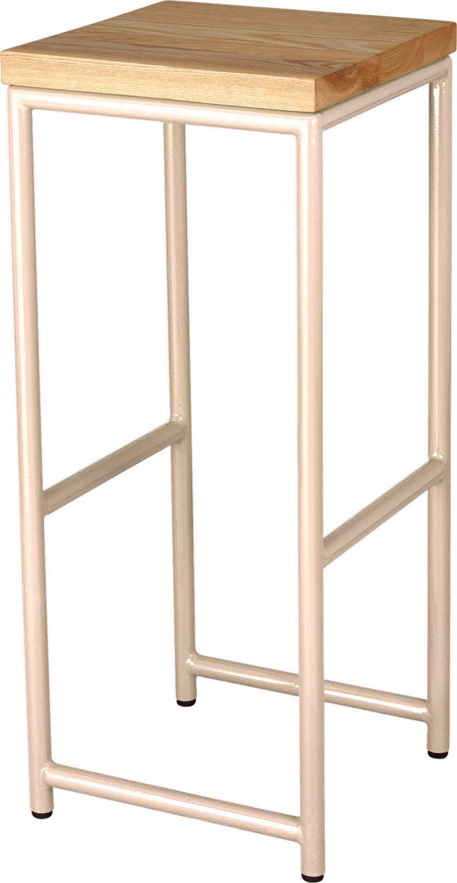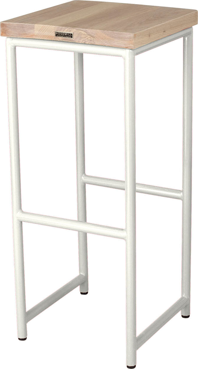 Off white metal stool with natural stain ash wood made in UK - side view round frame