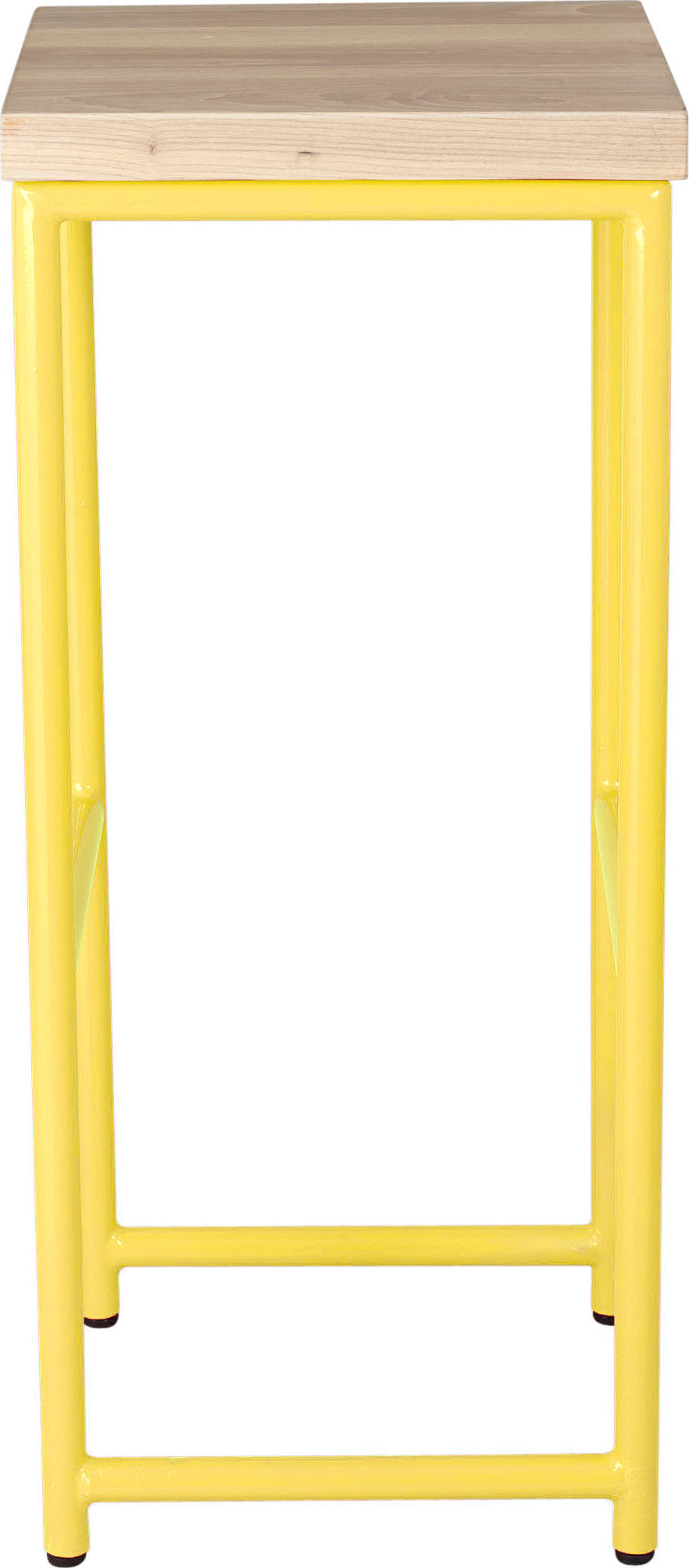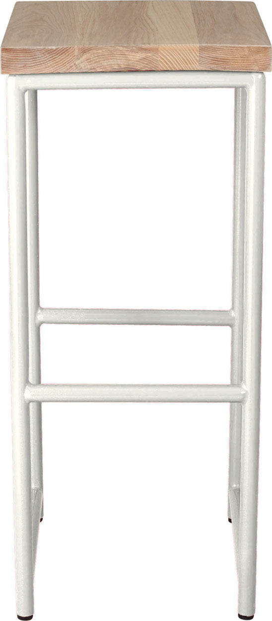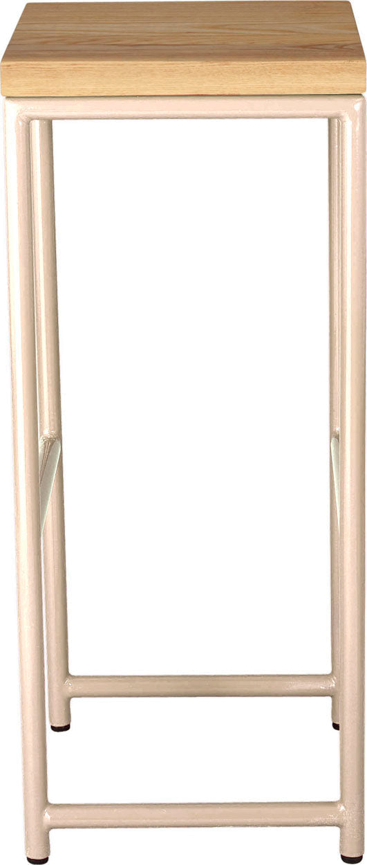 Off white metal stool with natural stain ash wood made in UK - front view round frame
