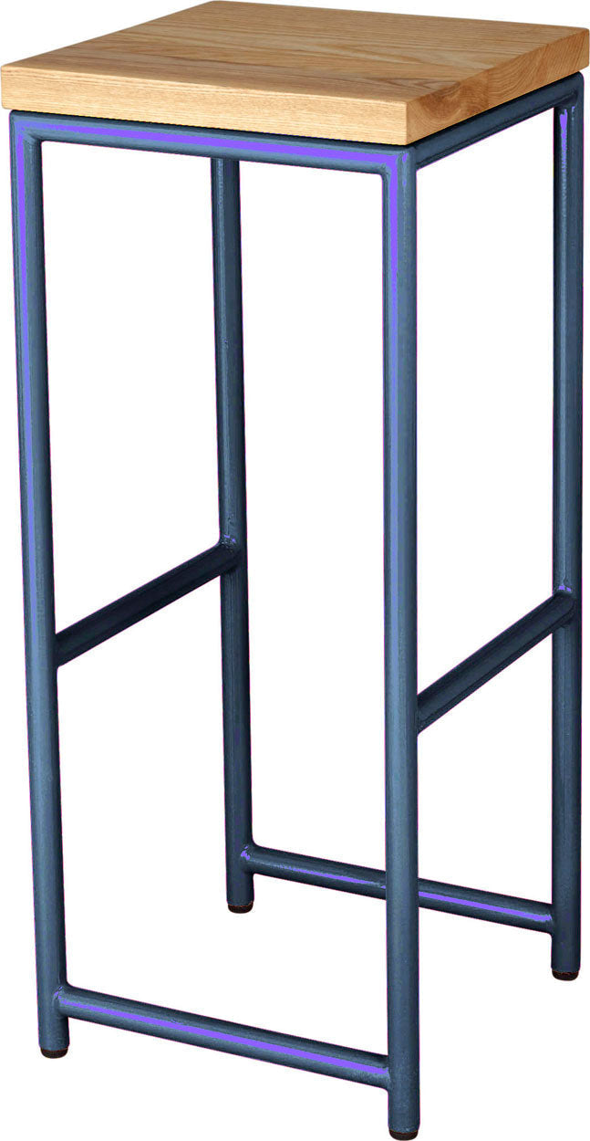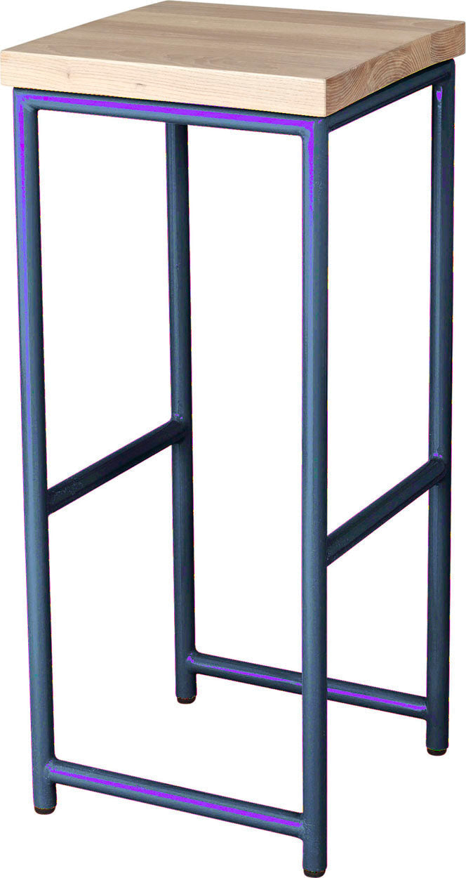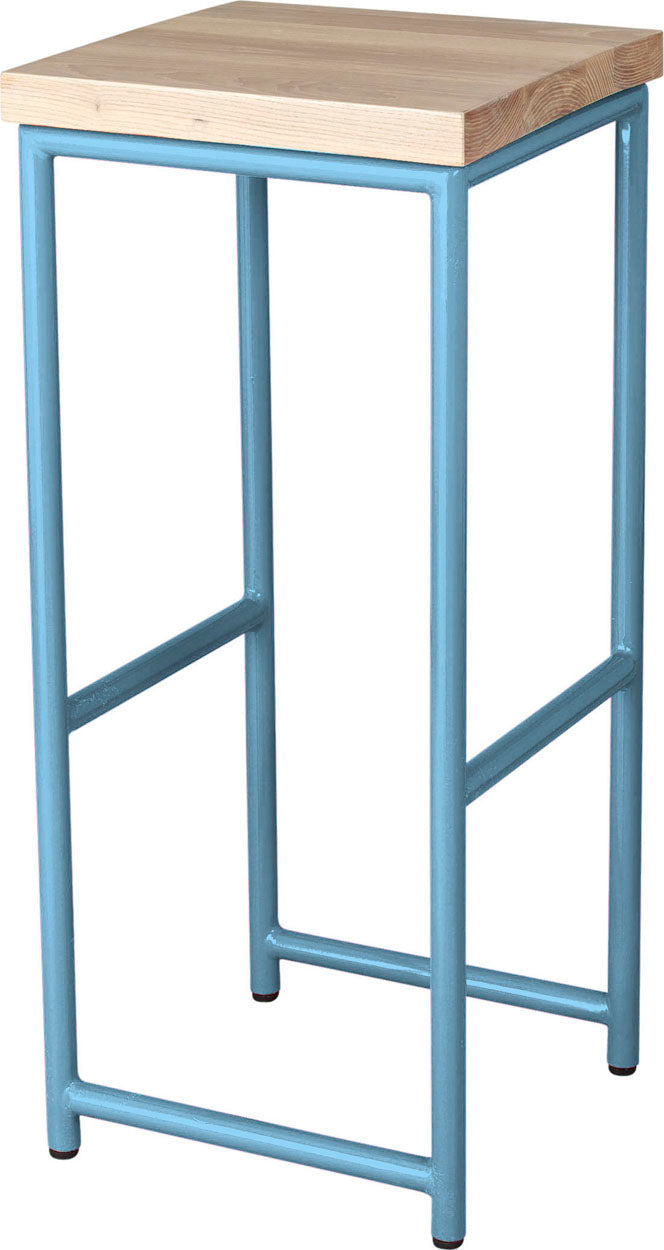• Load image into Gallery viewer, Shaker blue metal stool with natural stain ash wood made in UK - side view round frame
