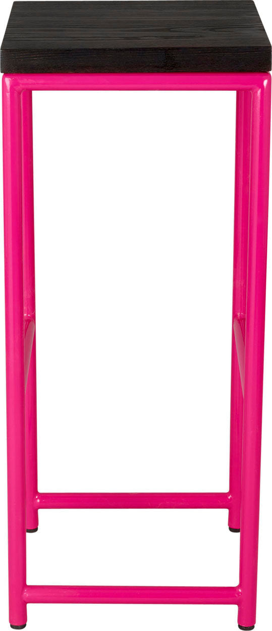 Pink metal stool with black stain ash wood made in UK - back side view round frame