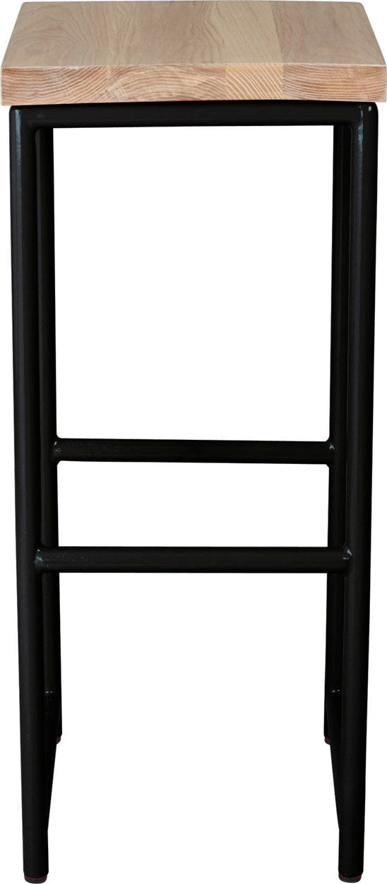 Gloss black metal stool with natural stain ash wood made in UK - front view round frame