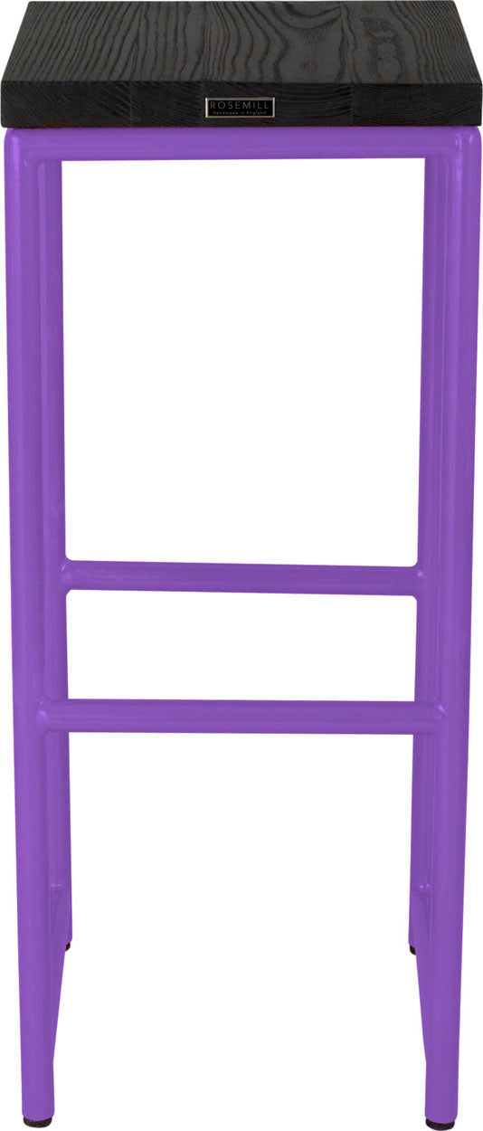 • Load image into Gallery viewer, Purple metal stool with black stain ash wood made in UK - front view round frame
